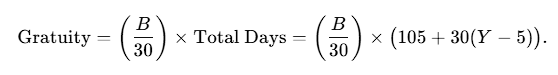 – If your monthly basic wage is “B,” your daily basic wage is B/30. So your gratuity is days × (B/30).